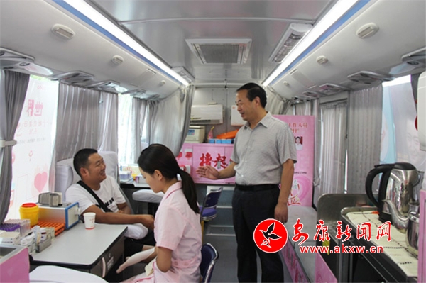 安康新聞網(wǎng)訊(通訊員 屈閔)“今天是7月25日,安康,晴,最高氣溫41℃,請(qǐng)大家盡量減少外出,做好防暑降溫措施,小心中暑!”主播甜美的嗓音從廣播里傳來,提醒廣大市民又是一個(gè)高溫天,要注意防暑。但對(duì)于安康市中心血站的一線工作人員來說,這只是個(gè)普普通通的工作日,因?yàn)闊o論是酷暑還是嚴(yán)寒,我們的獻(xiàn)血車總會(huì)準(zhǔn)時(shí)出現(xiàn)在大家的視線里,從不缺席。這不,早上7點(diǎn)半,獻(xiàn)血車已經(jīng)停靠在了位于南環(huán)路的喜盈門超市門,等待愛心人士的到來。