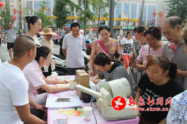 此時(shí),超市門前擠滿了前來購(gòu)物的老年人,不少人看見獻(xiàn)血車,便跑來咨詢,但他們當(dāng)中大多數(shù)人因?yàn)槌^獻(xiàn)血法定年齡,無法參與獻(xiàn)血,只能遺憾離開。隨著過往路人越來越多,血站工作人員拿著宣傳彩頁(yè),不斷地鼓勵(lì)大家加入到獻(xiàn)血隊(duì)伍中來。站長(zhǎng)胡章學(xué)也專門來到了采血現(xiàn)場(chǎng),和工作人員一同做起了動(dòng)員工作,耐心地為路人講解獻(xiàn)血知識(shí),還為等待獻(xiàn)血的愛心人士講述獻(xiàn)血前中后的注意事項(xiàng),叮囑獻(xiàn)血者要多喝水,多注意休息,胡站長(zhǎng)親切的笑容,感染著在場(chǎng)的每一個(gè)人。