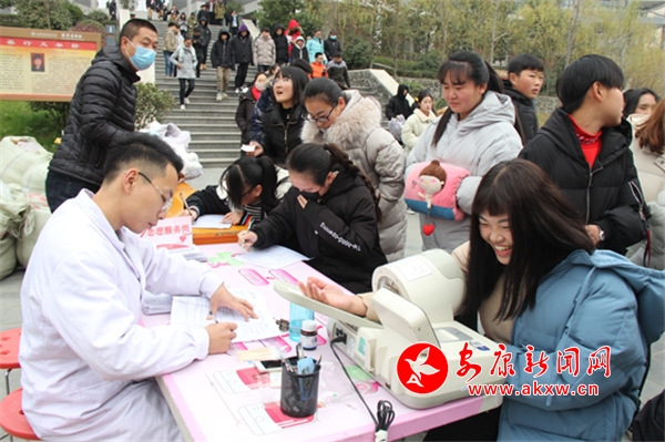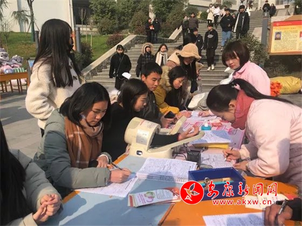 安康新聞網訊(通訊員 屈閔)在安康職業技術學院的校園中,有這樣一群人,他們的面龐雖略顯稚嫩,卻身懷一顆顆熾熱的心;他們默默無聞,卻踐行著傳播愛心、甘于奉獻的誓言。十二月的安康氣溫驟降,攝氏零度的低溫并未阻擋住在師生餐廳前開展的暖心行動,原來是安康職業技術學院聯合安康市中心血站組織的“讓愛流淌 讓心飛揚”主題校園無償獻血活動正式開始了。GhF安康新聞網