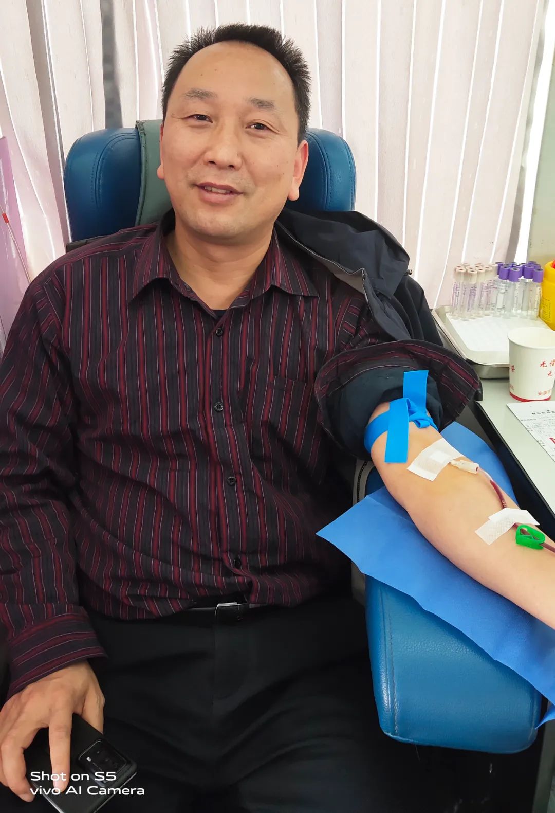 黨辦主任李子梅笑著說(shuō):“我一直想獻(xiàn)血,前幾次因?yàn)樯眢w原因沒(méi)有獻(xiàn)成,還特別遺憾,這次檢測(cè)符合獻(xiàn)血標(biāo)準(zhǔn)后我特別高興,作為醫(yī)務(wù)工作者,能夠?yàn)闊o(wú)償獻(xiàn)血事業(yè)貢獻(xiàn)自己一份微薄的力量,這很有意義。”