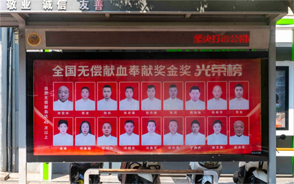 在第22個世界獻血者日到來之際,安康市中心血站精心策劃,自6月中旬起,在位于市政務大廳、市中心醫院、市中心醫院北院區門前的三處公交候車亭,以及中心城區兩處LED大屏上,全天循環展播著安康市榮獲“全國無償獻血奉獻獎”終身榮譽獎、金獎、銀獎、銅獎的獲獎者代表風采照片。UWe安康新聞網