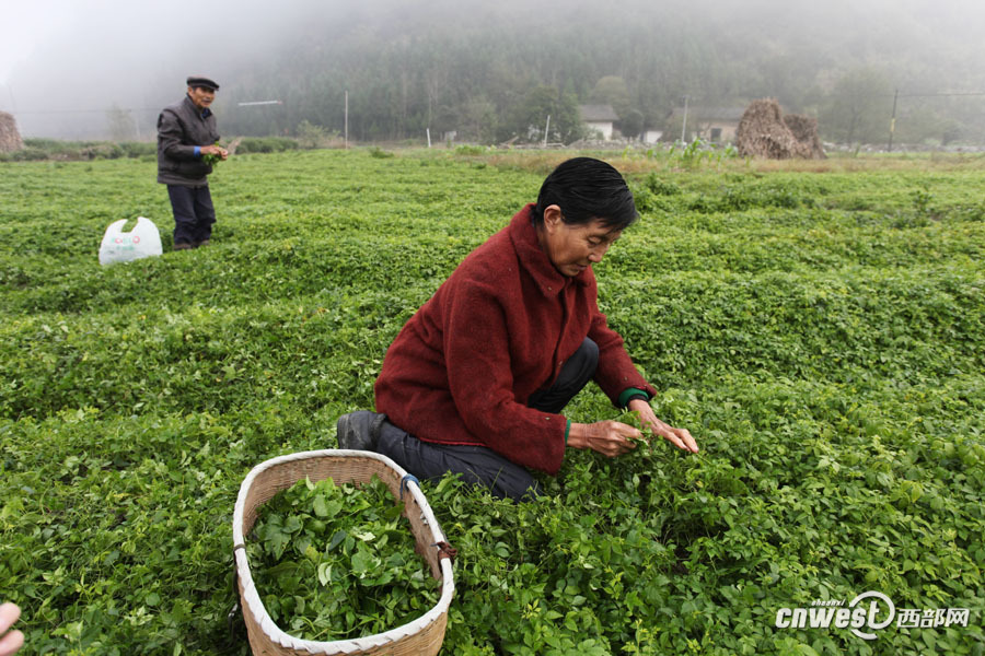 廣佛鎮鐵爐村農戶在采摘絞股蘭。