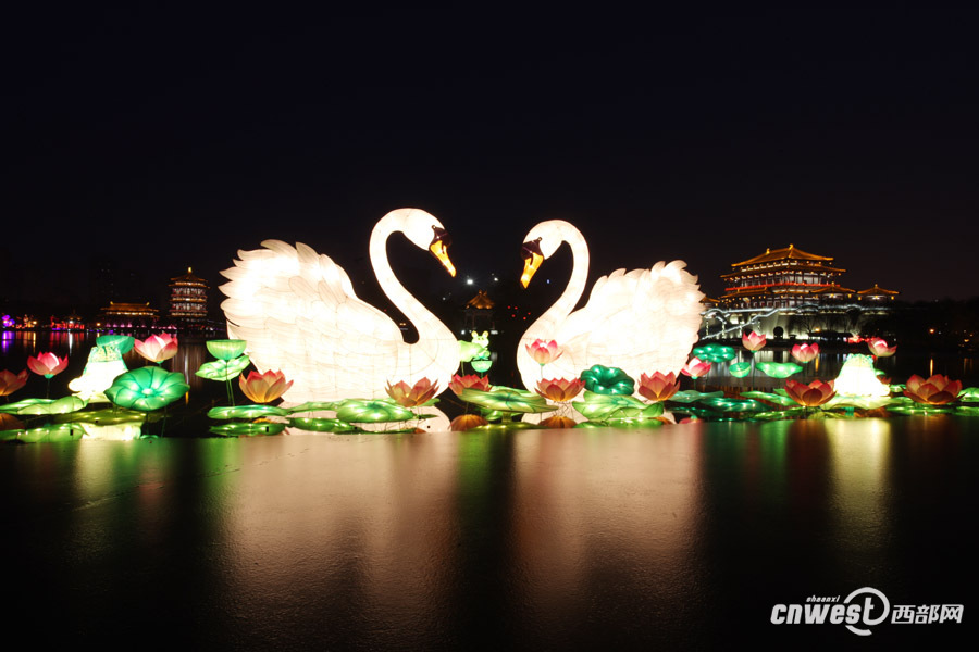 西部網(wǎng)訊(記者 魏永賢 敬澤昊)2月4日晚,西北地區(qū)最大的水陸燈會在大唐芙蓉園舉行點燈儀式,上百盞形態(tài)各異的花燈和寬闊的水面,以及唐風(fēng)園林景觀相映成輝。