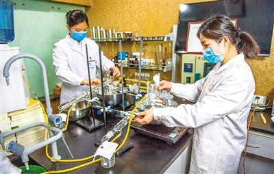 實驗開始30分鐘后,記者看到,燒瓶中的石油醚由原本的無色透明變為了淡淡的黃色,這說明湯圓中的油脂已被提取出來。這時燒瓶中的液體其實已不僅僅是石油醚,而是石油醚和油脂的混合物。此時,實驗的第一個大步驟——油脂提取已經完成。