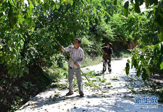 9月6日,陜西周至縣翠峰鎮(zhèn)官莊村的村民在核桃園內(nèi)采收核桃。近日,陜西多地的核桃進(jìn)入收獲季,當(dāng)?shù)剞r(nóng)民搶抓農(nóng)時(shí)進(jìn)行采收,一片忙碌景象。 新華社記者 邵瑞 攝JxK安康新聞網(wǎng)