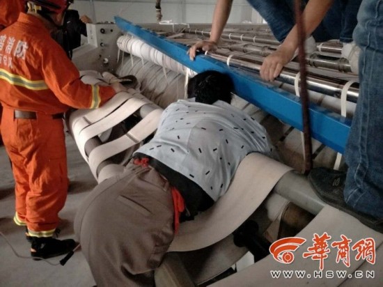 9月5日下午2時許,隴縣一名中年女工不慎手臂被卡烘干機,遂向消防求助,消防員切斷烘干機滾軸,將女工成功救出。