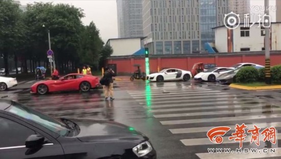 為保證婚禮車隊順利通過,開道的3輛豪車先后堵在三個十字路口中間“封閉管制”。昨日,“封閉管制”的一豪車駕駛員被交警處罰,并被移交公安部門。