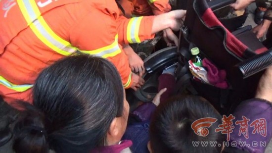 4日下午5時30分左右,漢中略陽縣一個小男孩不慎將腳卡進了鄰居大叔的輪椅中,周圍的人怎么也取不出來,最終只能求救消防人員。