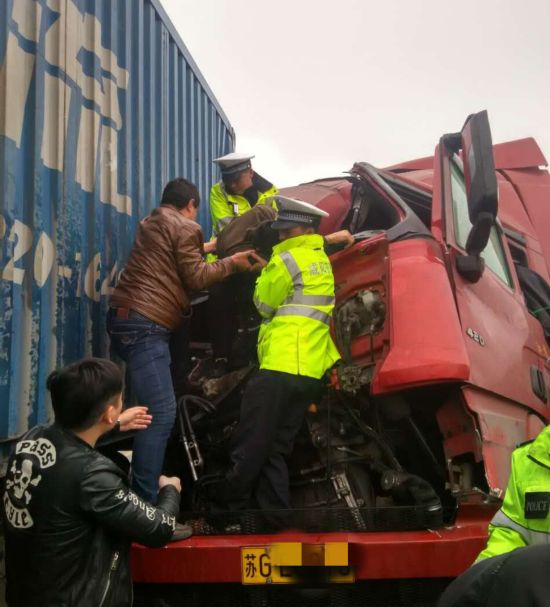 民警了解到,駕駛人朱某樂駕駛蘇G牌照重型半掛貨車從江蘇拉載百貨運往蘭州,行徑福銀高速陜甘界段因大霧引發交通事故,從而造成同車乘坐人朱某登受傷被困車內。駕駛人朱某樂表示,幸得咸陽高速交警果斷處置,受困傷員才得以及時脫險。