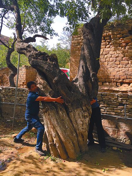 佳縣朱家坬鎮泥河溝村,在陜北紅棗栽植的歷史上,是一個富有神奇色彩的地方。村里有一棵“棗樹王”,據專家考證已有1300多年樹齡,僅樹干周長就超過3米,兩個成年人也抱不攏,至今每年仍產紅棗近百公斤,被譽為棗樹中的“活化石”。在“棗樹王”周圍,還有百余棵生長了近千年的古棗樹,形成了一個頗具特色的古棗園。園中的石牌坊上刻著“棗源”二字,足見栽植歷史的悠久和對陜北紅棗栽植的影響。