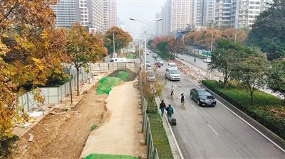 今年9月底,由于有關(guān)部門實(shí)施汽改水工程,高新路(科技四路至莊嚴(yán)巷段)西側(cè)非機(jī)動(dòng)車道及部分人行道被圍擋起來(lái)。由于施工沒能按時(shí)結(jié)束,竣工時(shí)間由最初的10月30日延至11月15日。然而,昨天上午記者在該路段看到,此處施工還是沒有如期結(jié)束,圍擋仍然存在。超期“服役”的圍擋,給該路段的交通造成一定程度影響。