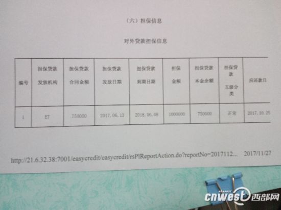 因為辦理貸款需要個人征信報告,11月27日李永寧從中國人民銀行征信中心拿到了自己的征信報告。這一查把李永寧嚇了一跳,自己竟是一筆七十五萬貸款的擔保人,擔保金額為一百萬。