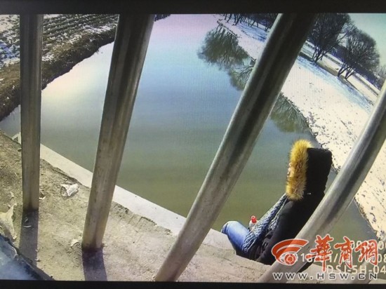獨坐在浐河橋護欄外的鋼架上,不時拿起手邊的白酒喝上幾口,然后痛哭不止,因為三天三夜沒找到女友,男子準備借著酒勁投河輕生。