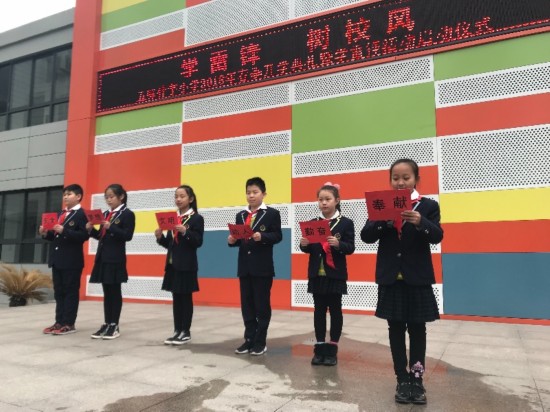 學生代表們通過誦讀將紅包里的心愿傳達給全校同學。接著,學生們飽含激情的朗誦《讓雷鋒精神綻放校園》,將學雷鋒和樹校風進行有機的結合。