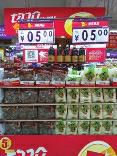 昨日下午,根據曹先生提供的信息,華商報記者前往東儀路與丈八東路十字東南角的人人樂南郊購物廣場。從二樓入口進入后,就能看到空中掛著“均價特賣”的宣傳海報。在曹先生購買醋的攤位,空中懸掛著“均價特賣5元”海報,下面堆放著多桶醋和粉絲等商品。記者查看貨堆四周,只看到粉絲有專門價簽為5元每袋。