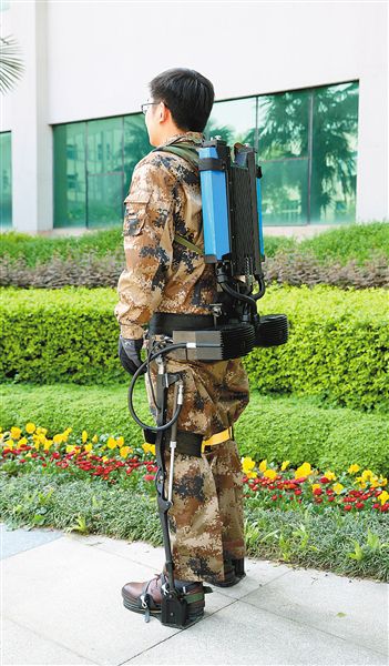 “穿戴式外骨骼助力機器人,是一款智能仿生、單人操作的軍民兩用多功能攜行助力系統。”莫新民告訴記者。從外觀來看,它就像套在人體外面的一件強壯、靈活的“鋼鐵外衣”;穿上后,在人的雙腿外側就會增加一副機械腿,把背部的大部分負重傳遞到地面,同時人的運動靈活性也不會受到太大的影響——負重50kg的行進速度能達到每小時4公里,與普通人正常走路的速度差不多。直白地說,新技術就是讓人可以“舉重若輕、健步如飛”。此外,它還能適應1.6m—1.9m的身高范圍,可連續工作4小時。穿戴也比較方便:自己穿需要約2分鐘,有人輔助40秒就能穿好,脫卸只需要30秒,并可折疊運輸。