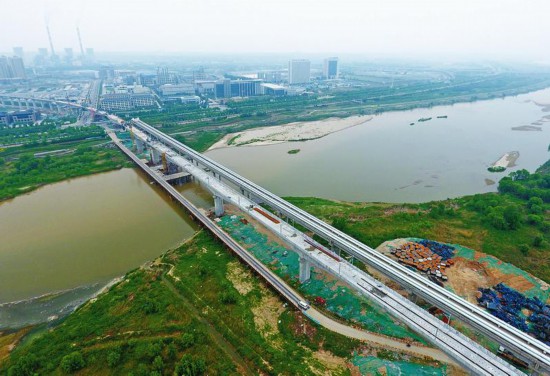 YQq安康新聞網(wǎng) 4月23日,由中鐵十七局承建的城際鐵路西安機場線項目渭河特大橋順利貫通。該橋全長7.33千米,是城際鐵路西安機場線控制性工程之一。YQq安康新聞網(wǎng)