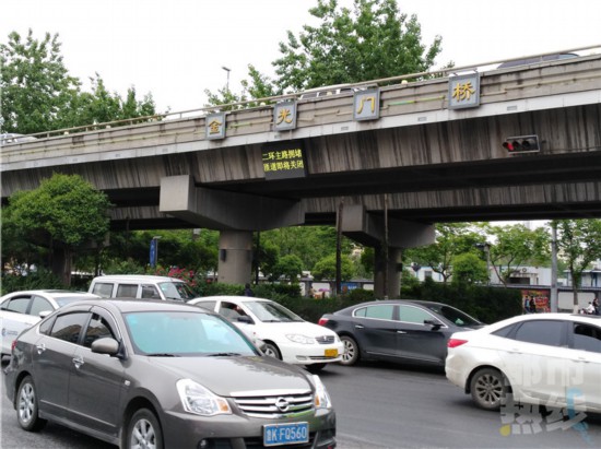 西二環立交橋匝道口有了紅綠燈,堵時亮紅燈禁入。