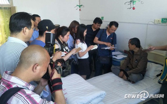 中省媒體健康扶貧采訪團采訪正在接受治療的貧困患者董建朝。