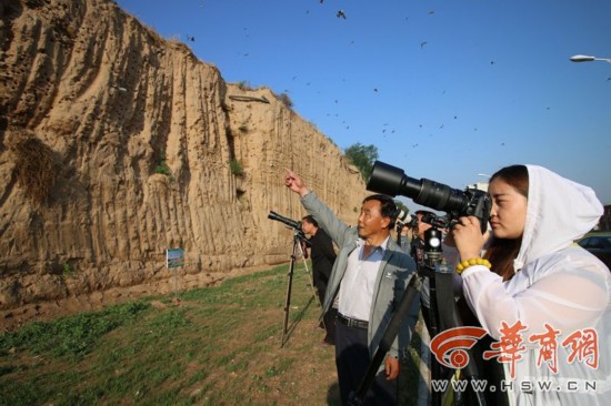 當(dāng)?shù)鼐用駝⑸n峰是一名攝影愛(ài)好者。今年4月,他從朋友圈得知石川河南岸有崖沙燕。“當(dāng)時(shí)我就和幾個(gè)攝友一起來(lái)看,并決定邀請(qǐng)更多的攝影愛(ài)好者一起來(lái)拍攝。”他說(shuō),從4月至今,他們已經(jīng)多次到這里拍攝。