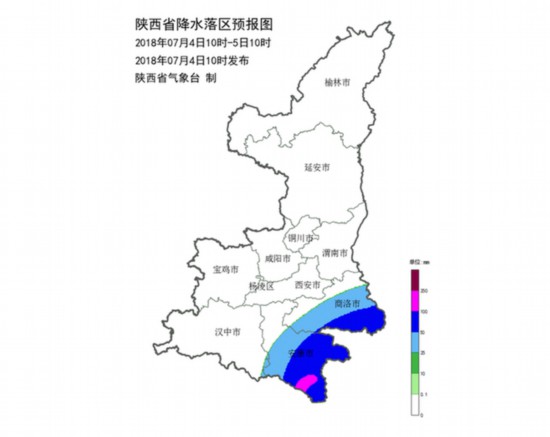 陜西省氣象臺7月4日10時00分降級發布暴雨藍色預警