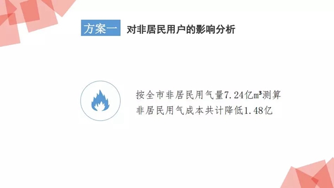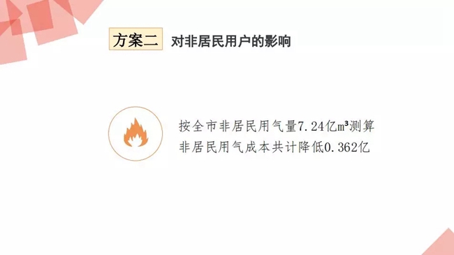 非居民用氣售價由現行的2.30元每立方米調整為2.25元每立方米,下調0.05元每立方米。