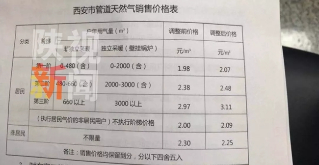 一是調整居民用氣銷售價格。綜合中省調價因素,西安市需要疏導上游門站價格增幅0.056元每立方米。