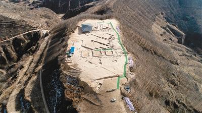 11月24日,延安蘆山峁遺址考古現(xiàn)場航拍圖。