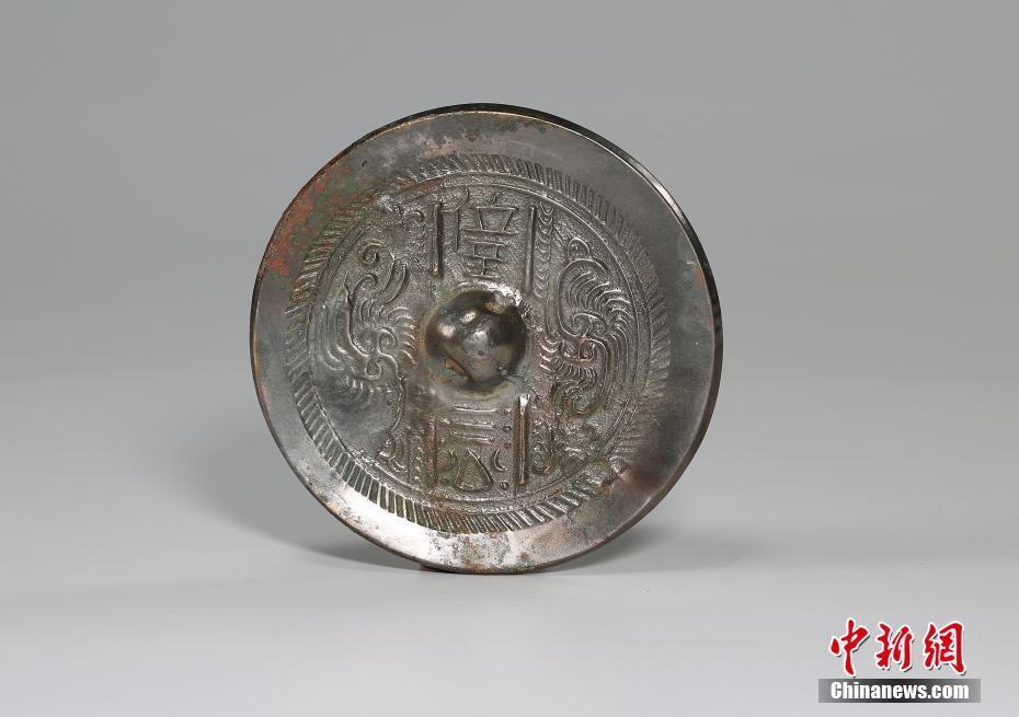 1月10日,陜西省考古研究院透露,2017年至2018年,陜西省考古研究院在西咸新區空港新城雷家村發掘了一處十六國墓地,該墓地共有十二座墓葬,分南北兩排,每排六座。這是咸陽原上首次發現的集中分布的十六國時期的墓葬,也是陜西首次在十六國墓葬中發現祭祀遺跡和谷物遺存。圖為銅鏡。 中新社記者 鐘欣 攝tP3安康新聞網
