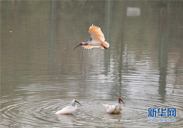 陜西洋縣朱鹮生態園內的朱鹮。新華網 汪艷攝m4M安康新聞網
