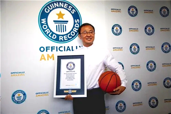 (徐長清2016年打破半場超遠投籃六連中吉尼斯世界紀錄時領獎留影 攝影 姚建宇)