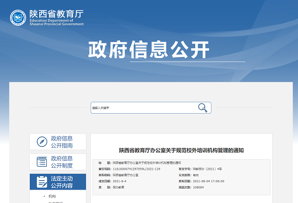 8月4日,陜西省教育廳辦公室發布關于規范校外培訓機構管理的通知,要求校外培訓機構立即停止義務段暑期學科培訓,嚴禁培訓機構以學前班、幼小銜接班、思維訓練班、素質拓展等名義面向學齡前兒童開展線下學科類(含英語)培訓。