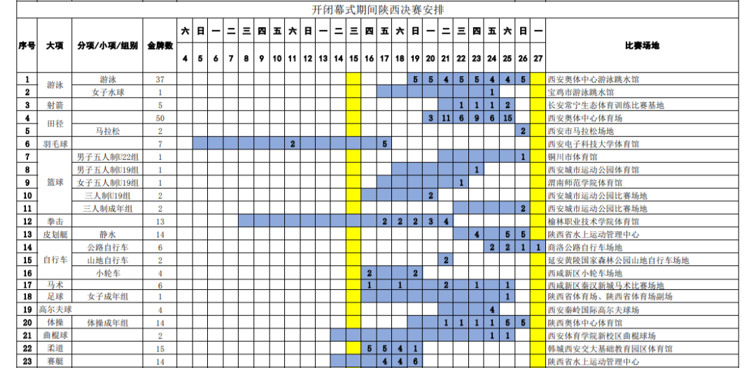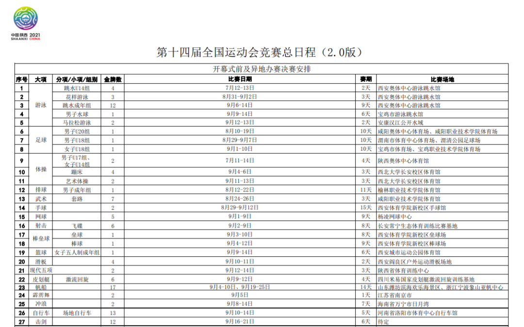 8月3日,國家體育總局辦公廳公布了第十四屆全國運動會競賽總日程(2.0版)。根據東京奧運會賽程,以及疫情防控工作需要,國家體育總局調整了部分項目的競賽日程。vTn安康新聞網 vTn安康新聞網 vTn安康新聞網 vTn安康新聞網 vTn安康新聞網