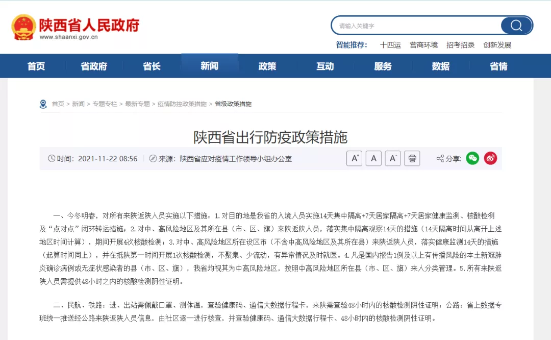 近日,陜西省應(yīng)對(duì)疫情工作領(lǐng)導(dǎo)小組辦公室發(fā)布陜西省最新出行防疫政策措施。