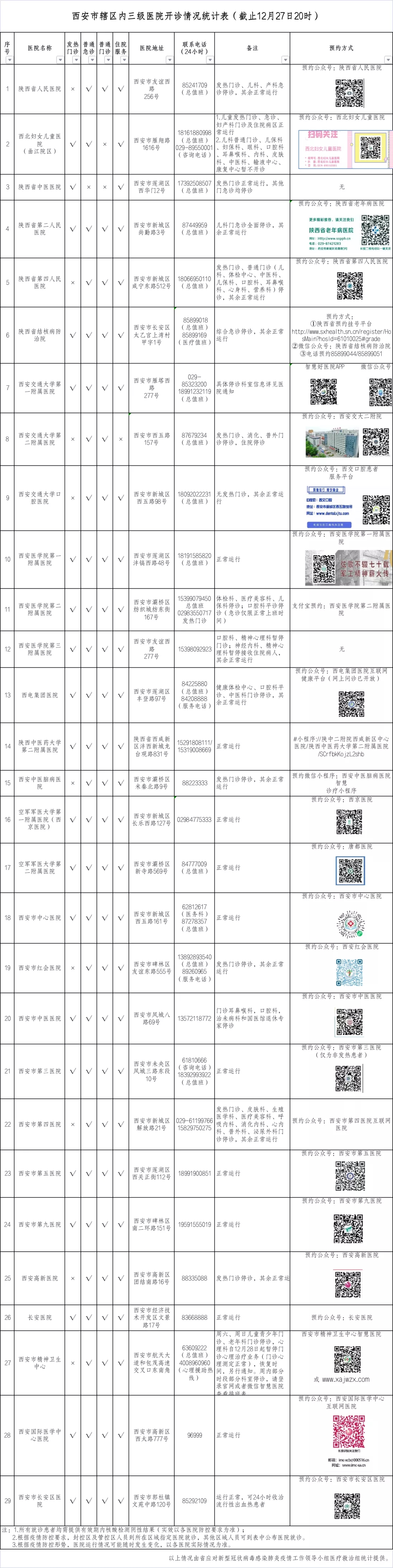 截止12月27日20時,西安市轄區內三級醫院開診情況,具體戳下圖了解↓↓↓ 9QY安康新聞網