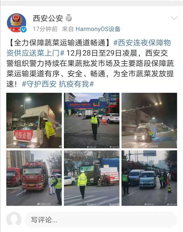 12月28日晚,西安全市總動(dòng)員組織準(zhǔn)備蔬菜等生活必需品,為封閉管理小區(qū)提供充足物資保障,鄠邑區(qū)、碑林區(qū)、雁塔區(qū)、高新區(qū)等陸續(xù)發(fā)布物資保障公告,讓廣大市民靜下心來(lái)、足不出戶,居家防控。