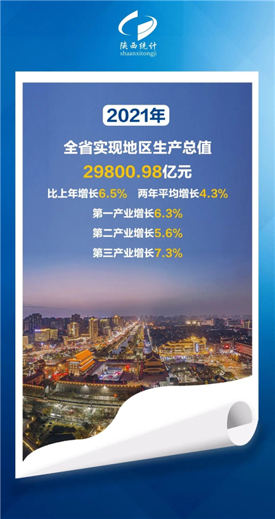 1月19日,省統計局發布2021年全省經濟運行情況:2021年,全省實現地區生產總值29800.98億元,同比增長6.5%,兩年平均增長4.3%。