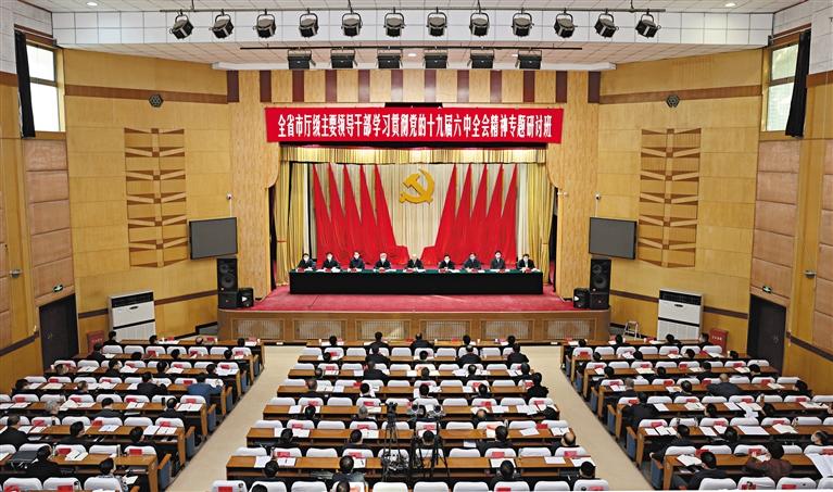二月二十三日,全省市廳級主要領導干部學習貫徹黨的十九屆六中全會精神專題研討班在西安開班。