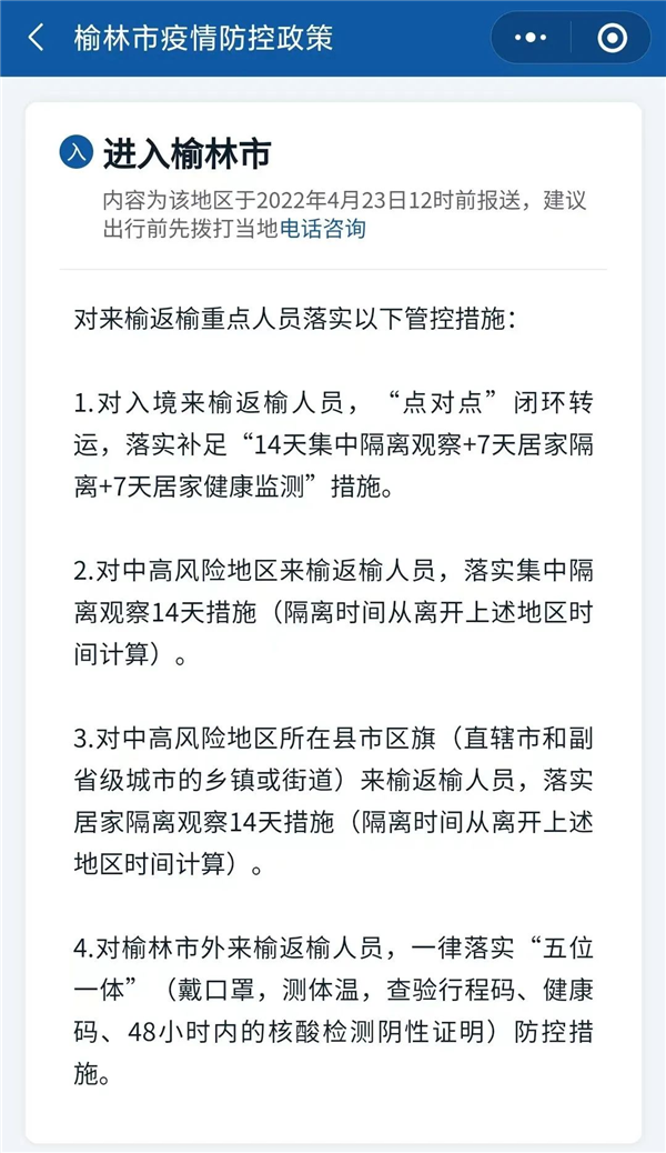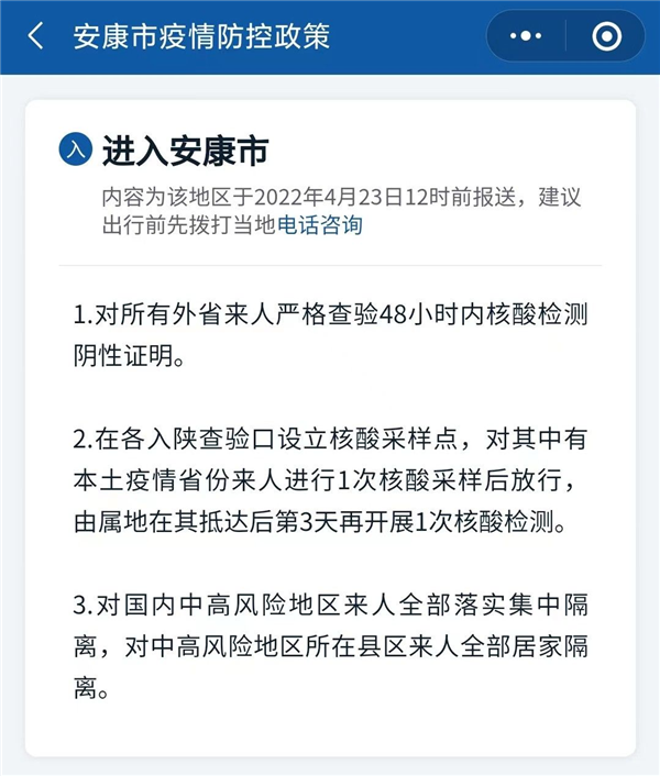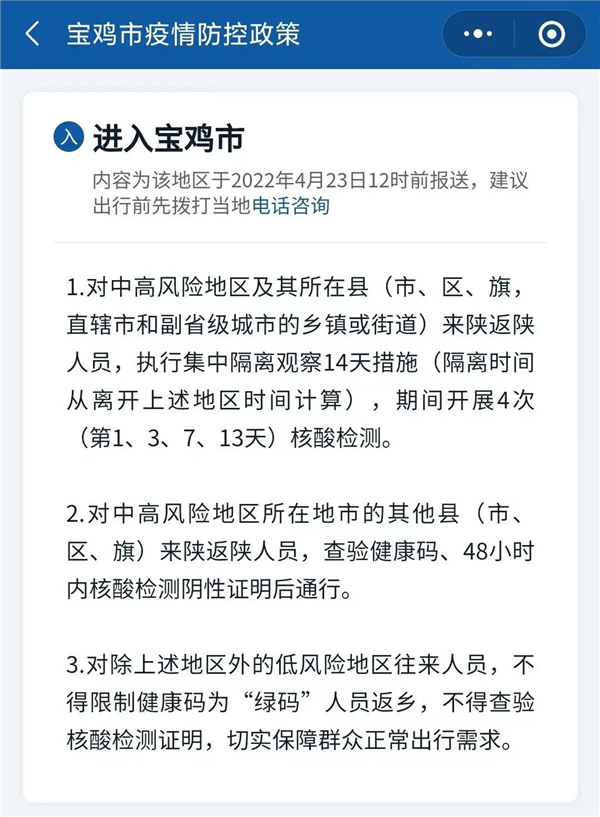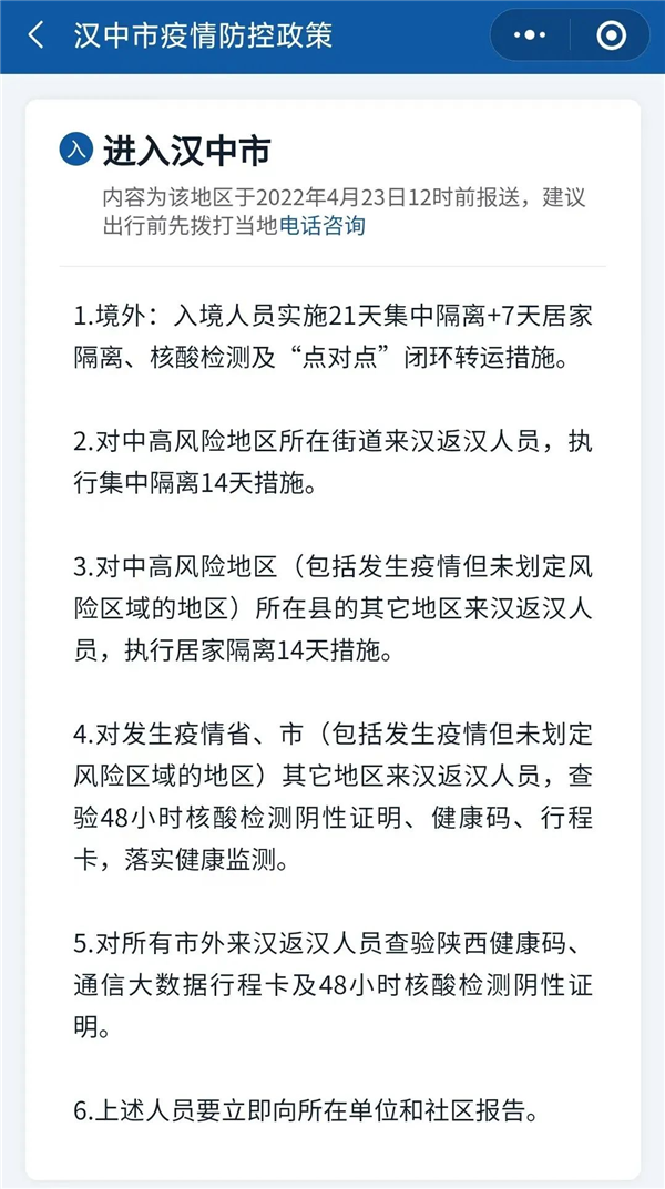 陜西省內各市最新的疫情防控政策來了!(截至4月23日)建議出行先撥打當地電話咨詢: