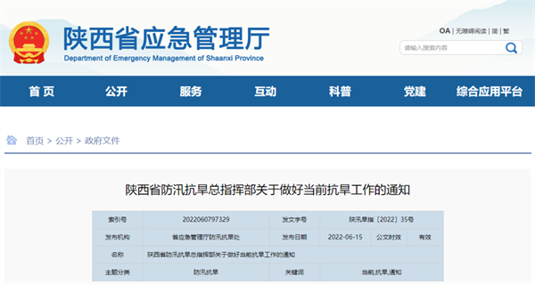 近期我省降水偏少,氣溫持續偏高,導致陜北北部、陜南東部、渭北出現輕到中度干旱,其中榆林、商洛、渭北局地出現嚴重干旱。后期降水仍將分布不均,旱情發展演變升級快,影響到工農業生產安全。為做好當前抗旱工作,現就有關要求通知如下:
