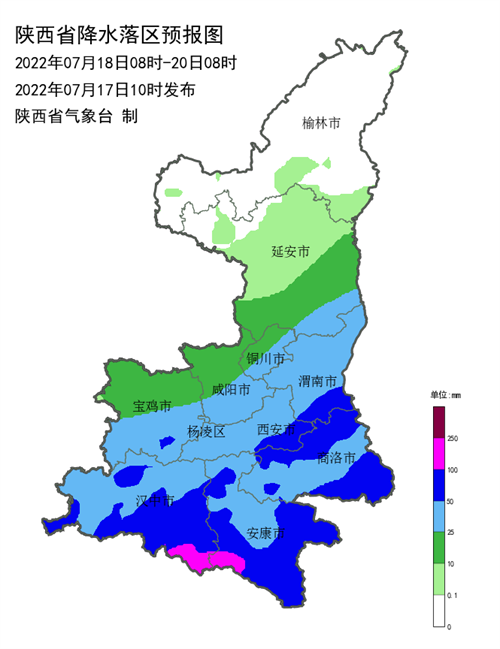 預計陜北南部、關中北部有小到中雨,局地大雨,關中南部、陜南有中到大雨,陜南南部及東部部分地方、秦巴山區有暴雨,局地有大暴雨。