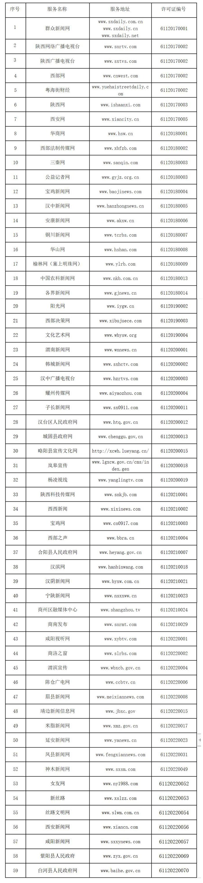 《互聯網新聞信息服務管理規定》實施以來,陜西省網信辦按照國家互聯網信息辦公室統一工作部署,組織開展屬地互聯網新聞信息服務許可審批工作。現將陜西省互聯網新聞信息服務單位相關許可信息予以公開,包括:服務主體136個,互聯網站59個,應用程序130個,論壇2個,公眾賬號299個,共計490個服務項。