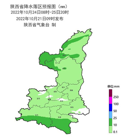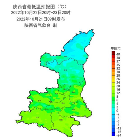 受弱冷空氣影響,陜北北部22-24日最低氣溫較低,維持在0~3。受降水影響,25日全省最高氣溫下降4~6。