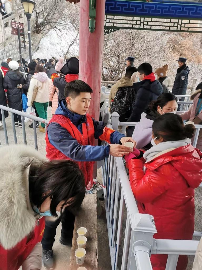 華山景區(qū)舉辦了“華山味·中國年‘冰雪+溫泉’福兔祈福華山過大年”新春迎賓系列活動(dòng),推出華山春節(jié)福兔祈福迎賓七大優(yōu)惠,為來華山的游客呈上一道旅游盛宴。華山腳下,最早的中國式搖滾——華陰老腔和華陰素鼓雙非物質(zhì)文化遺產(chǎn)表演,喜鬧新春。春節(jié)期間,華山景區(qū)客流大增,大年初三16:00,入園人數(shù)已接近景區(qū)最大日限流量1.5萬人次,西峰和北峰索道上下站都排起了長龍。當(dāng)天氣溫突降,景區(qū)工作人員貼心地熬煮了熱氣騰騰的紅棗姜湯送到游客手中,游客紛紛贊嘆:“太暖心了。”