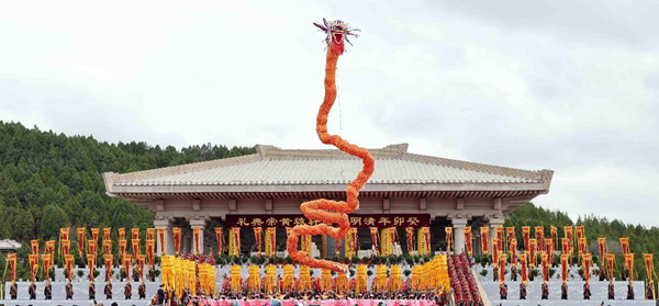 大風泱泱,大潮滂滂,萬里山河,東風浩蕩。在盛大的樂舞告祭中,一條長56米的“金色飛龍”從祭臺中心盤旋騰躍而起,承載著炎黃子孫對人文初祖無限崇敬與感恩之心、承載著實現中華民族偉大復興的中國夢,飛上云霄。