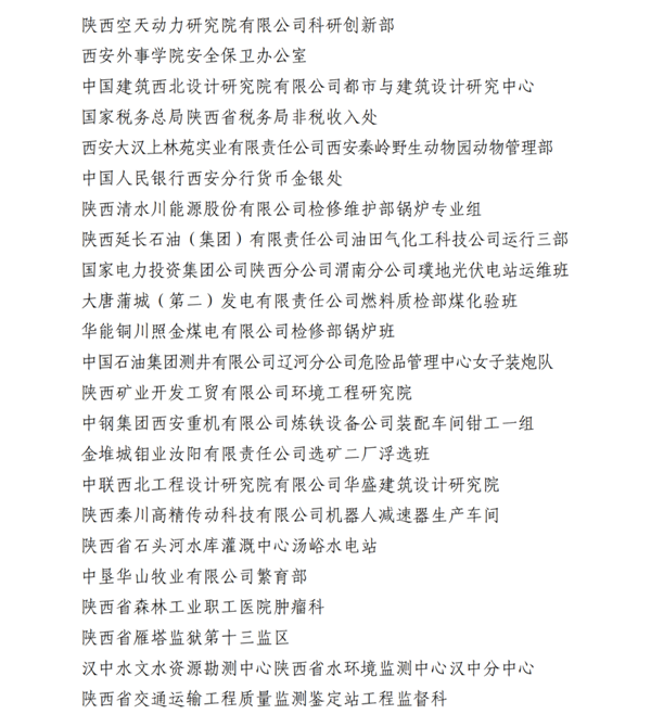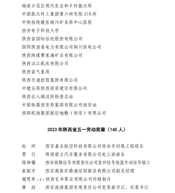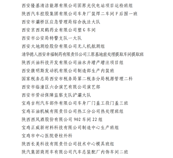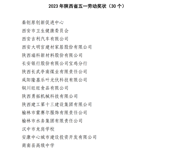 為進一步增強新時代工人階級的自豪感和使命感,營造勞動光榮的社會風尚和精益求精的敬業風氣,陜西省總工會決定,授予秦創原創新促進中心等30個單位陜西省五一勞動獎狀;授予杜珂等140名同志陜西省五一勞動獎章;授予西安隆基清潔能源有限公司固原光伏電站項目運檢班組等100個集體陜西省工人先鋒號。