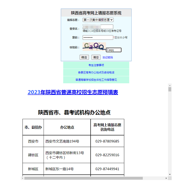 1.考生憑網(wǎng)上報(bào)名時所用報(bào)名號(14位)或準(zhǔn)考證號(10位)及密碼登錄網(wǎng)上填報(bào)志愿系統(tǒng),網(wǎng)址為陜西省教育考試院門戶網(wǎng)站(https://www.sneea.cn)或陜西招生考試信息網(wǎng)(https://www.sneac.com)。