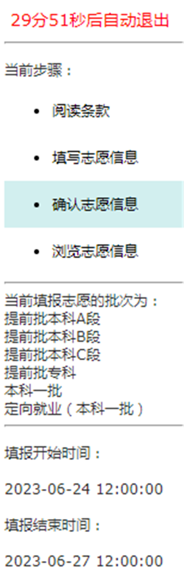 4.進(jìn)入確認(rèn)志愿頁面,檢查所填志愿,均無須修改后點(diǎn)擊“確認(rèn)”。