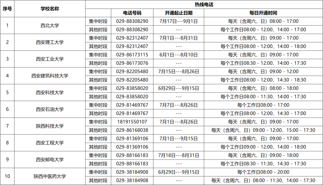 為幫助廣大學生和家長及時準確了解國家資助政策,申請獲得相應資助,陜西省地方高校本?茖W段每年暑期均開通熱線電話。