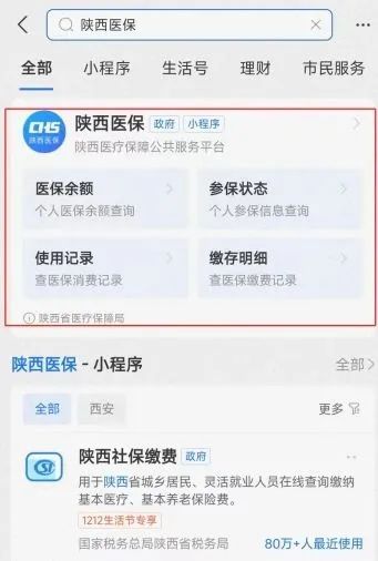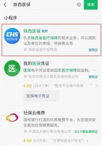 (2)小程序:微信/支付寶搜索陜西醫保小程序